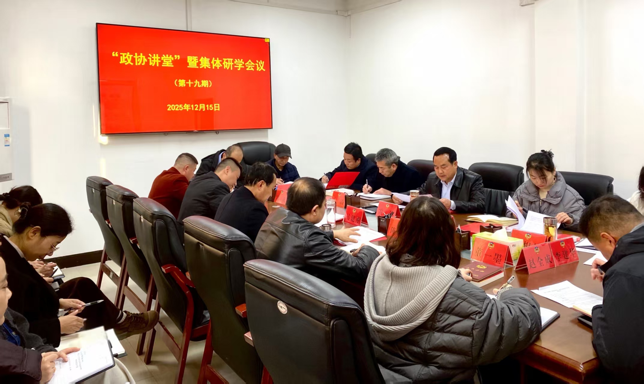 12月15日,区政协机关召开第十九期“政协讲堂”暨集体研学会议,组织开展集体学习,并围绕“学习贯彻党的二十届四中全会精神”主题开展交流研讨。区政协党组成员、秘书长雷锋主持会议并讲话,机关科级及以下干部职工参加会议。