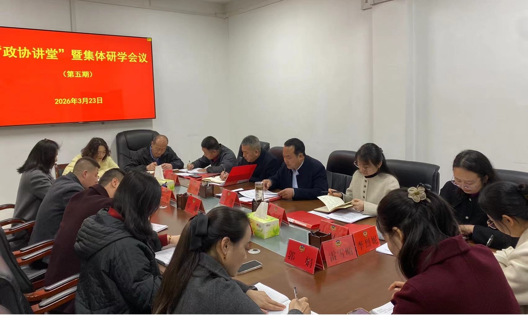 3月23日,区政协机关召开第五期“政协讲堂”暨集体研学会议,组织开展集体学习,安排近期重点工作,并围绕“树立和践行正确政绩观”开展专题研讨。区政协党组成员、秘书长雷锋主持会议,机关科级及以下干部职工参加会议。