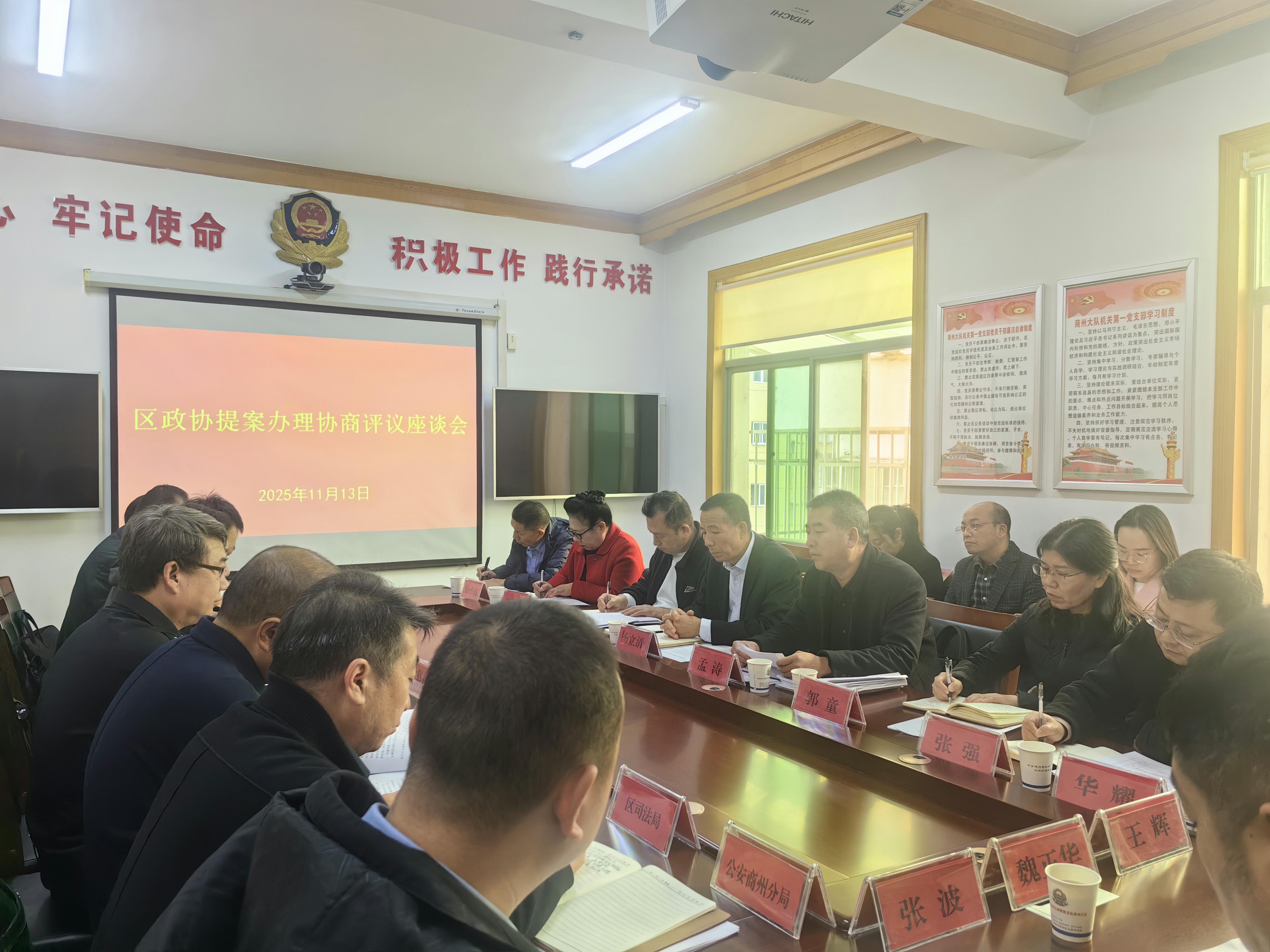 为进一步加强和改进政协提案办理,促进办理工作取得实效,按照区政协主席会议安排,11月14日,区政协副主席杨立清带队,民宗法委员会组织,区委督查办配合,邀请10多名政协委员或提案人组成评议组,先后赴区发改局、城管局、区法院等单位,通过实际察看、交流访谈等形式,深入了解提案办理工作成效,并在区交警大队组织召开协商评议座谈会,全面听取各单位提案办理情况,围绕提案办理工作进行深度协商、交流互动、解疑释惑、建言献策,并现场评议打分。