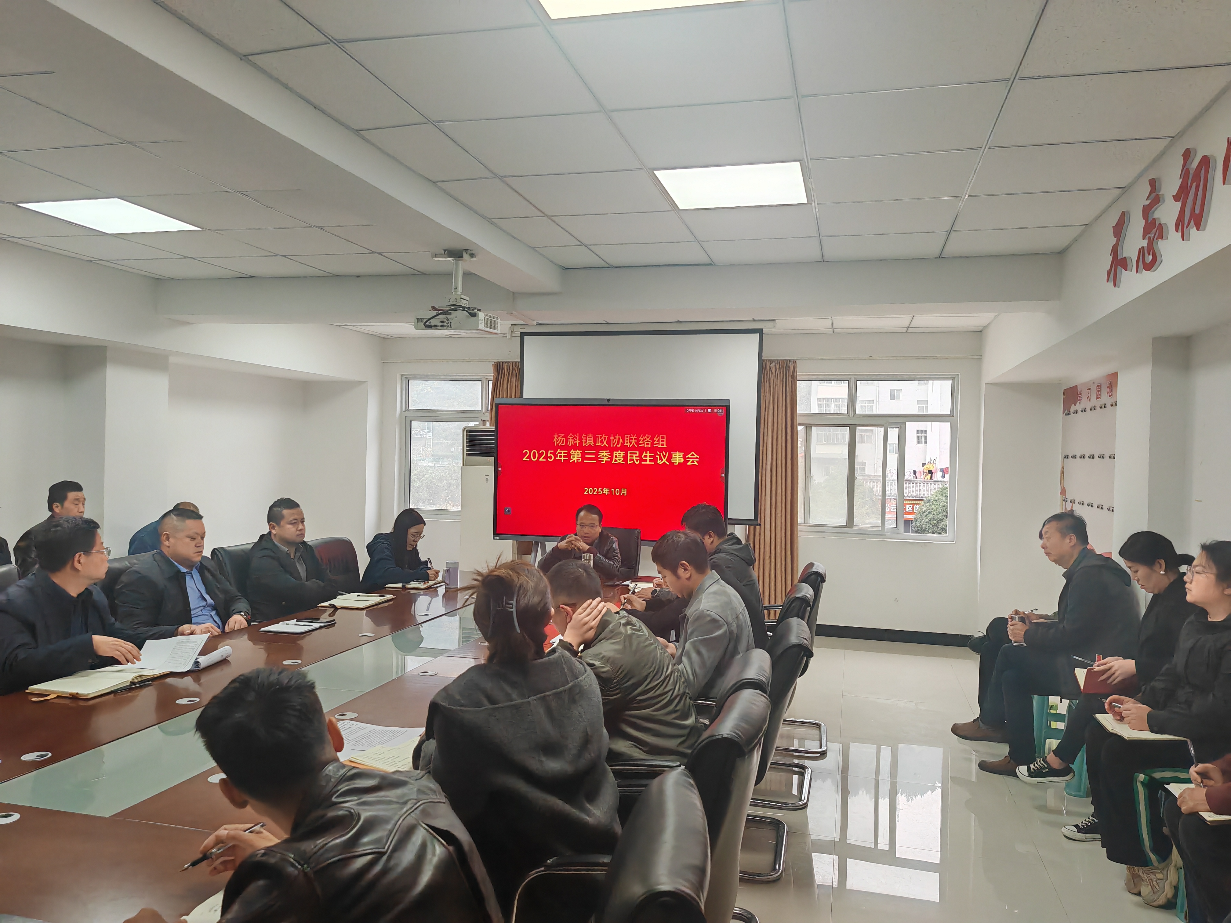 为进一步推进政协“谋实事·解民忧”工作,提升基层社会治理效能,充分发挥政协委员协商议事、服务群众的桥梁作用。10月29日下午,杨斜镇政协联络组召开2025年第四季度民生议事会。会议由镇党委书记、政协联络组组长南卫强主持,镇领导班子成员、辖区政协委员及各村(社区)党支部书记参加会议。